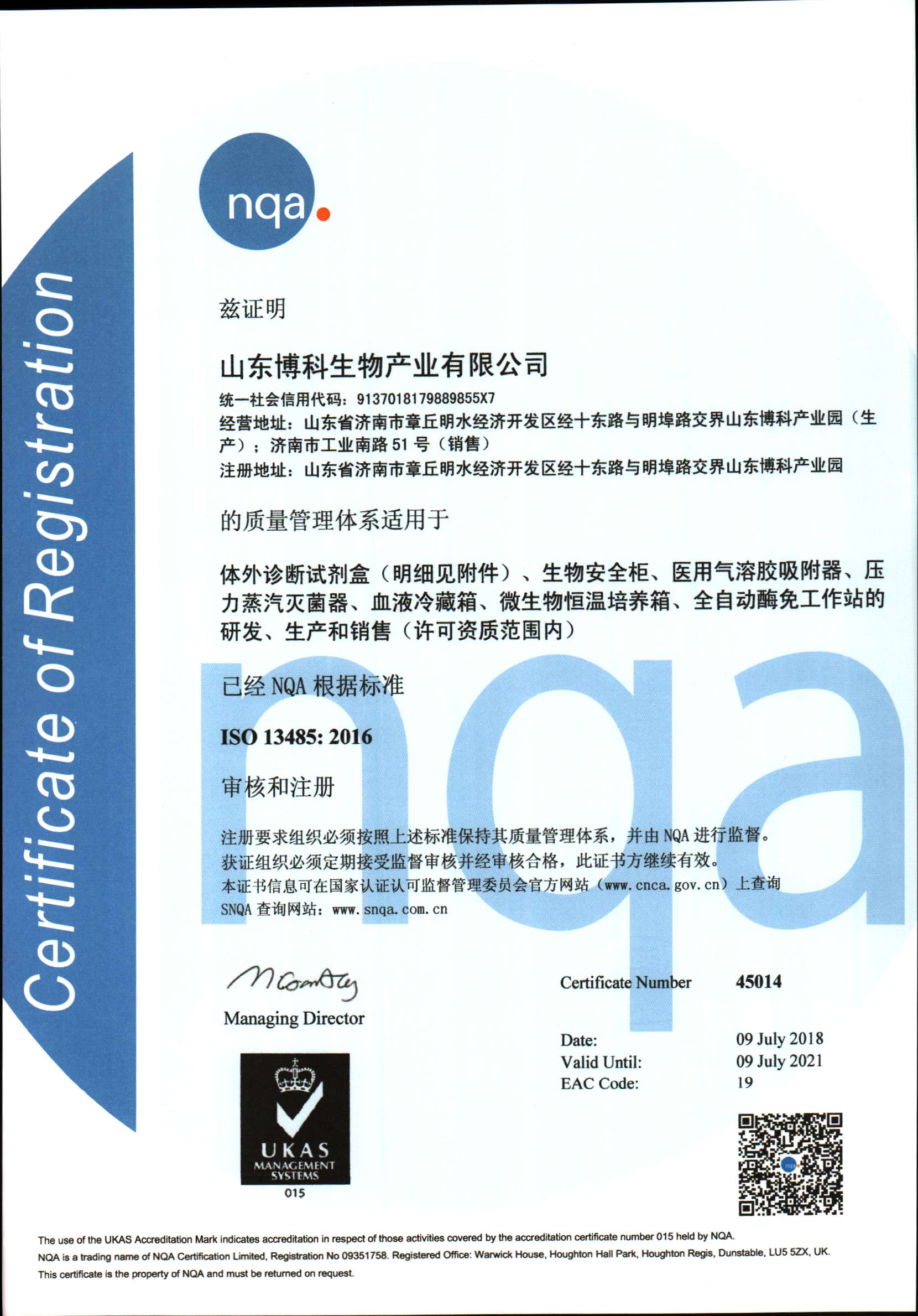 當前位置:首頁>新聞中心 > 新聞資訊> 熱烈祝賀博科通過ISO9001及13485體系換版認證