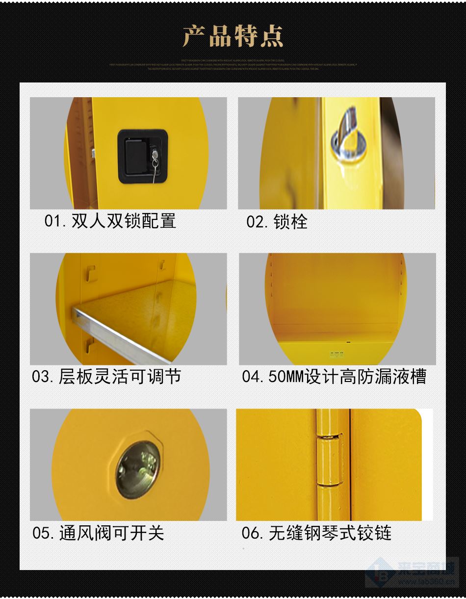 方便性,選擇不同規格的黃色安全柜存儲,有組織有條理的分開各類危險物品,就近存放提高您的工作效率。產品廣泛應用于醫療衛生,科研、工業、外貿、商業等各個領域。