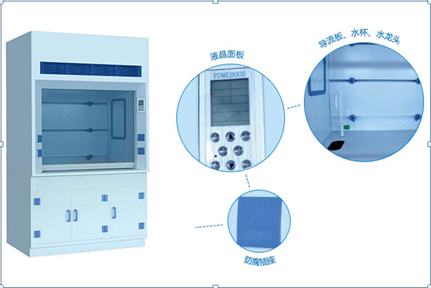 2、操作臺面:通風柜臺面采用與上柜體整體焊接設計,人位操作面設有擋水防溢處理,臺面也可根據客戶需求配備其他材質臺面;上水槽根據用戶要求配置。