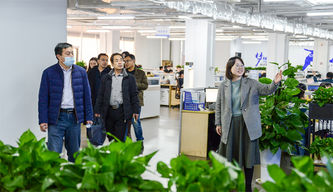 首先,在人力資源總經理王正霞的帶領下,張書記一行參觀了博科共享展廳及部分辦公區域,王總對公司產品情況、發展模式、未來發展等進行了詳細介紹。