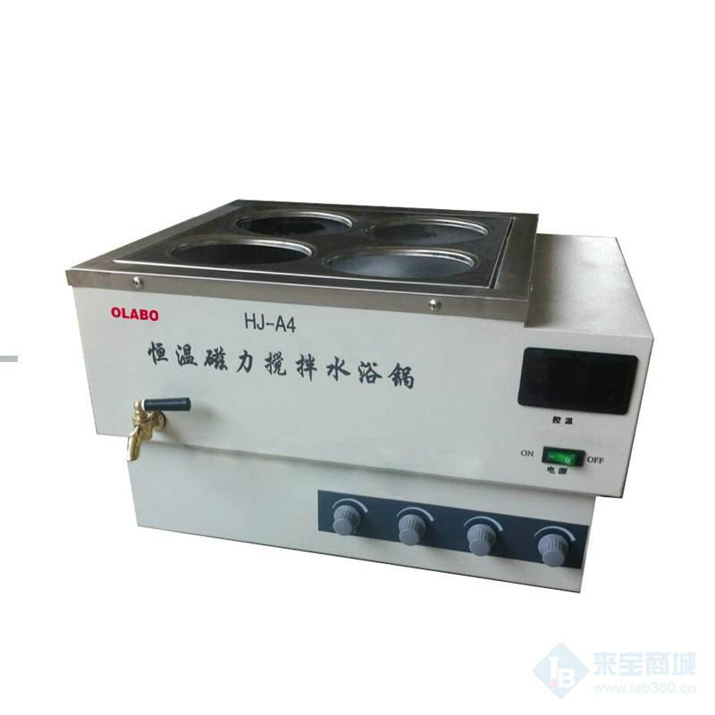 歐萊博 HJ-A4磁力攪拌恒溫水浴鍋HJ-A4磁力攪拌恒溫水浴鍋是輔助恒溫實驗儀器,由機箱、恒溫水槽和控溫裝置三部分組成。本儀器設有4個孔位,每個孔位可單獨進行攪拌,也可直接將攪拌子將放水浴鍋攪拌,這樣水浴鍋內溫度將更均勻,更較精確,適用于各實驗室作蒸發及恒溫加熱之用…