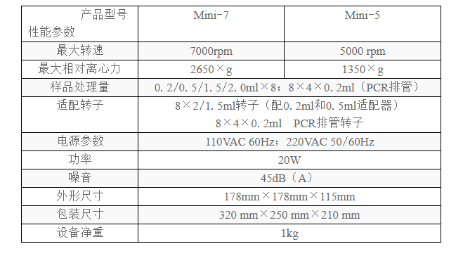 歐萊博迷你離心機Mini-7轉速:7000rpm,標配8孔位角轉子和PCR排管轉子,可一機多用