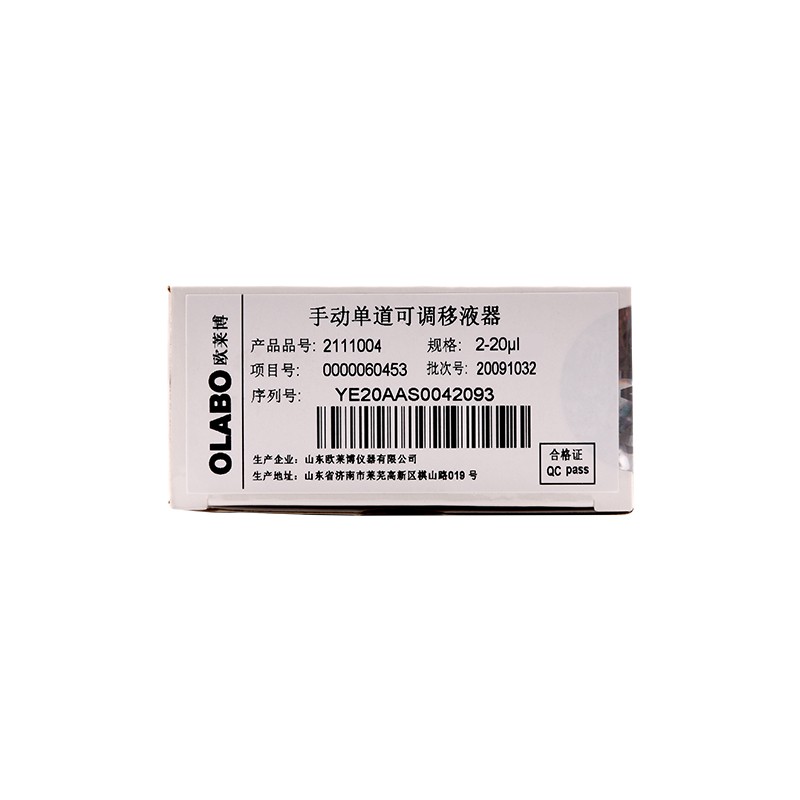 國產OLABO,B系列單道可調式移液器2-20μl量程:2-20μl,精確分液,數字視窗,符合人體工學,握姿舒適