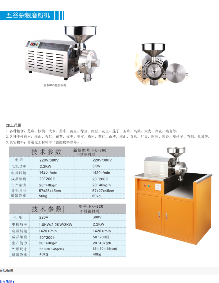 HK-860五谷雜糧磨粉機(2.2KW)電機功率2.2KW