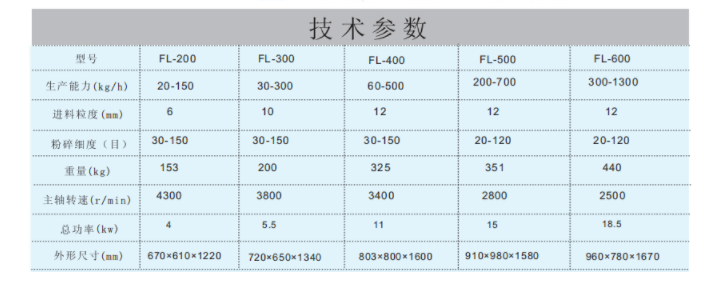 FL-200風(fēng)冷粉碎機(jī)結(jié)構(gòu)合理,傳動平穩(wěn),低能耗,高效率,拆裝方便。