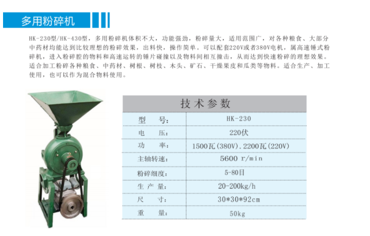 HK-230多用粉碎機(jī)體積不大,功能強(qiáng)勁,粉碎量大,適用范圍光