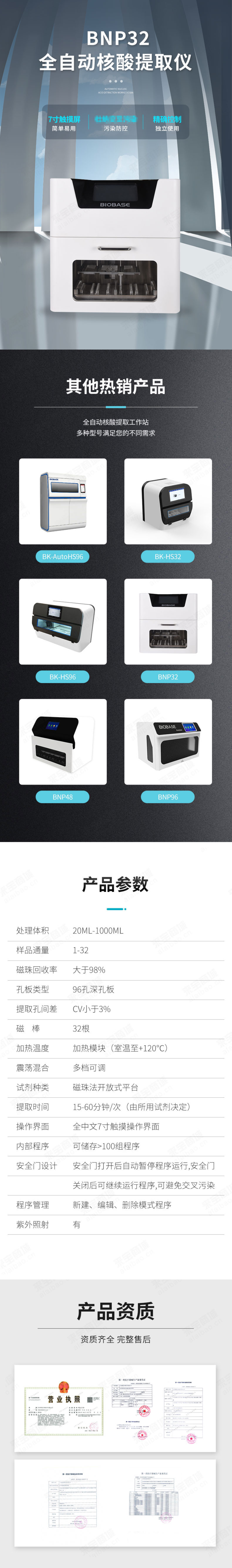 操作時間短,7-60分鐘(與試劑有關),通量大,可以同時提取32份樣品 |
