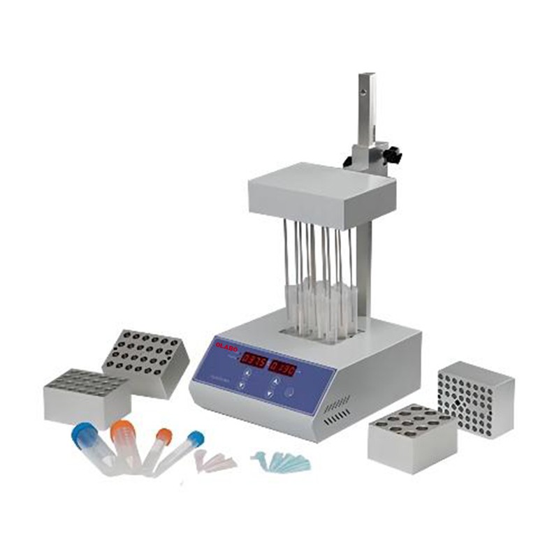 OLB-ND100系列氮氣吹掃儀釆用微電腦和PID模糊控制技術,利用高純度鋁材料做為導熱介質,以代替傳統的水浴裝置,使用方便、控溫范圍大精度高等。其工作原理是將氮氣或空氣快速、 連續、可控地吹到加熱樣品表面,并根據被濃縮溶劑的蒸發速度和沸點,設定加熱溫度,實現大量樣品的快速濃縮。